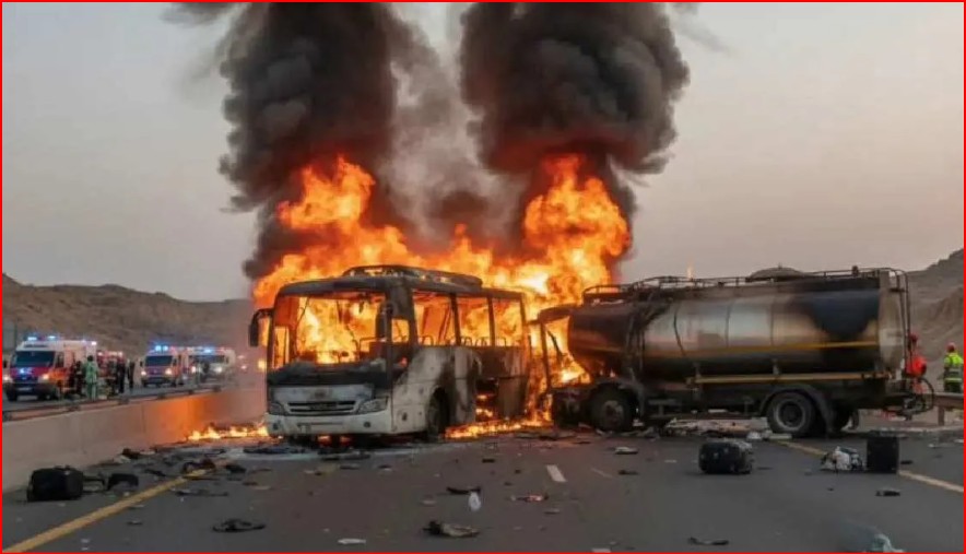 सऊदी अरब में भीषण सड़क हादसा: हज यात्रियों से भरी बस टैंकर से टकराई, 42 भारतीय यात्रियों की मौत