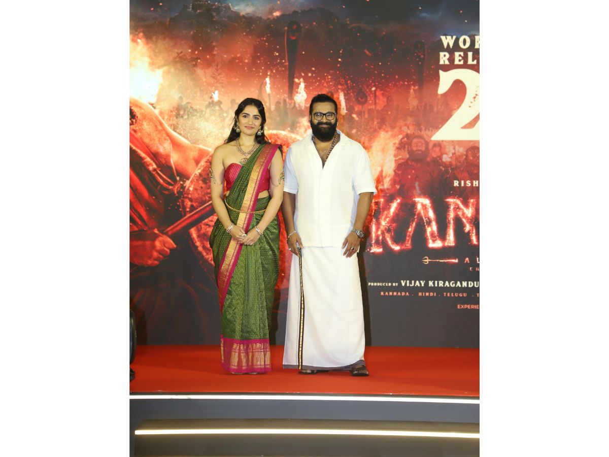 Rishab Shetty, Rukmini Vasanth, Pragathi Shetty Grace The Press Meet Of Kantara %3A Chapter 1