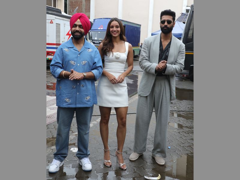 Vicky Kaushal, Ammy Virk And Triptii Dimri Spotted Promoting Their Film Bad Newz At Mehboob Studios